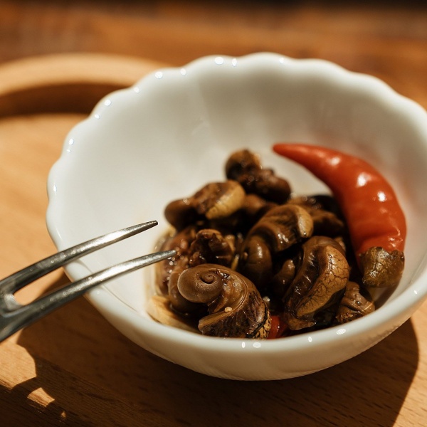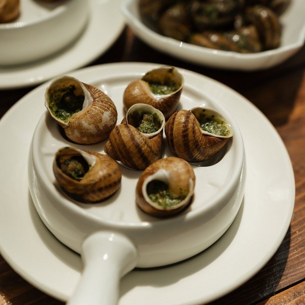 Обратите внимание на улиток — сюрприз для истинных гурманов. Под хрустящей корочкой скрывается нежнейшее мясо с богатым, глубоким вкусом. Каждая улитка, томленная в ароматном масле с чесноком и травами, раскрывает букет, который подчеркивает и облагораживает вкус напитка.